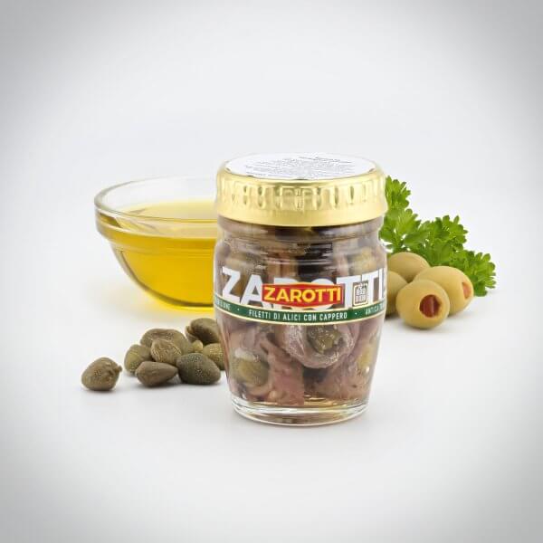 46% sózott szardella (Engraulis encrasicolus) (szardella, étkezési só), olívaolaj, kapribogyó.
